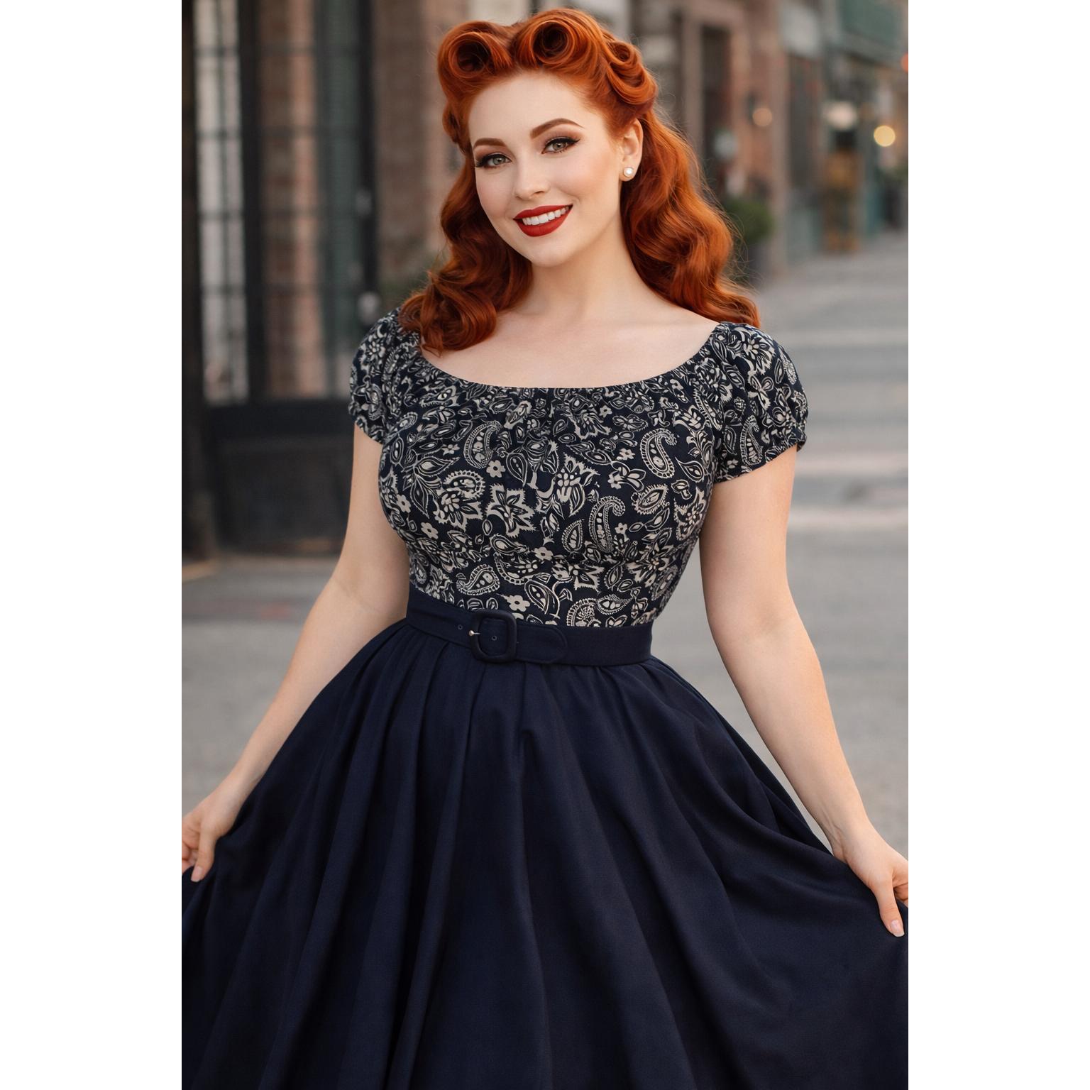 Pinup Peasant Blouse in Black Paisley