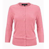 - 22\"-23\" Length, 3/4 Sleeves, Button Down, Basic, Daily, Casual, Crewneck Knit Cardigan Sweater