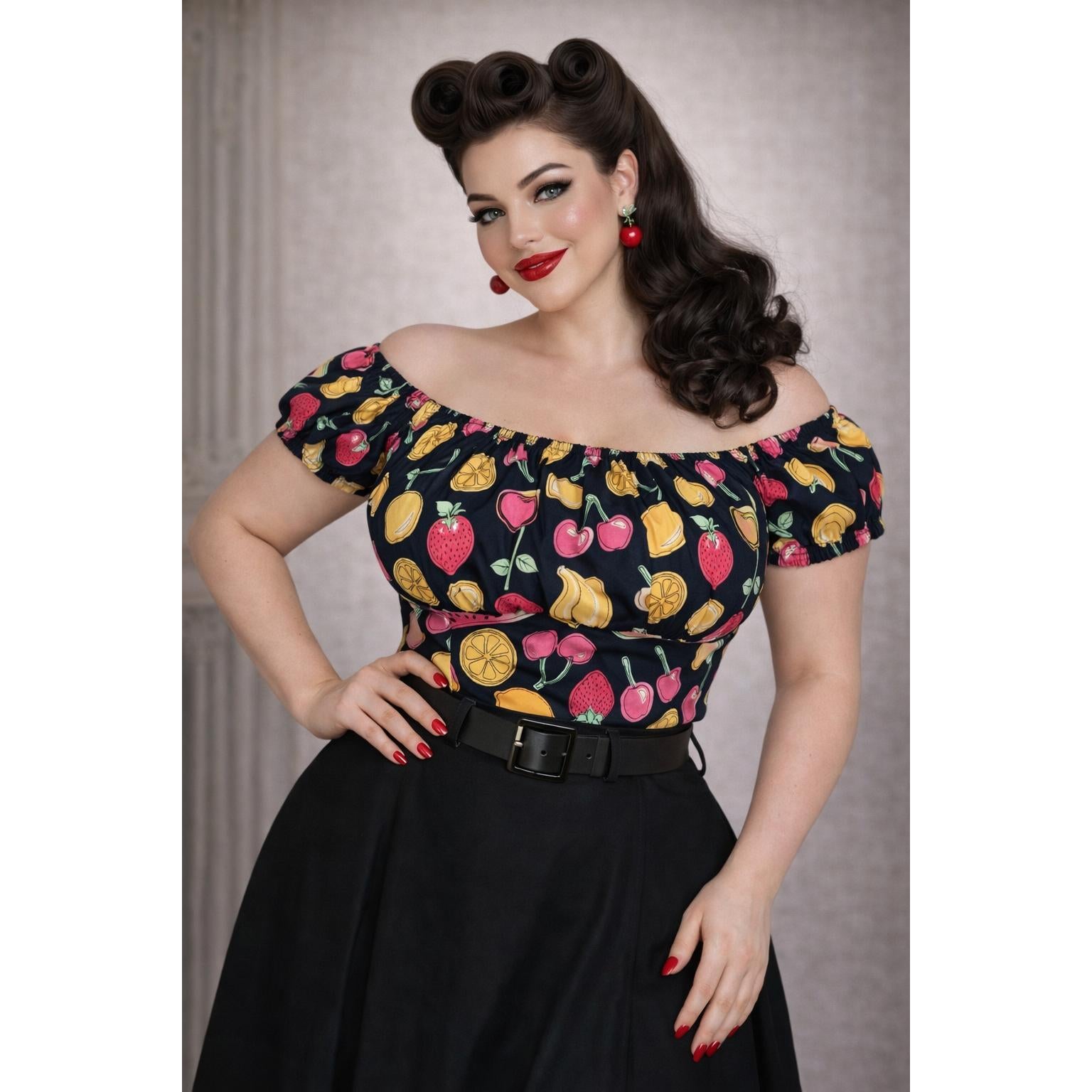 A peasant blouse is the PERFECT addition to any pinup outfit with its simple, classy look. Pair it with your favorite capris, pedal pushers, or circle skirt for a romantic retro look. It can be worn on or off-the-shoulder. Zips on the side for easy on and off.