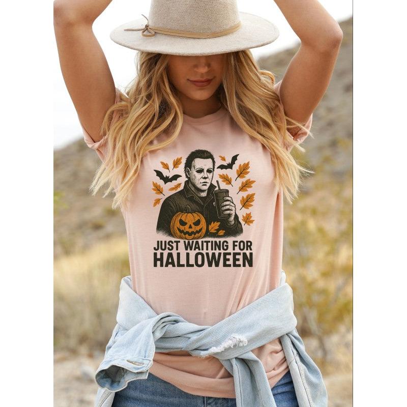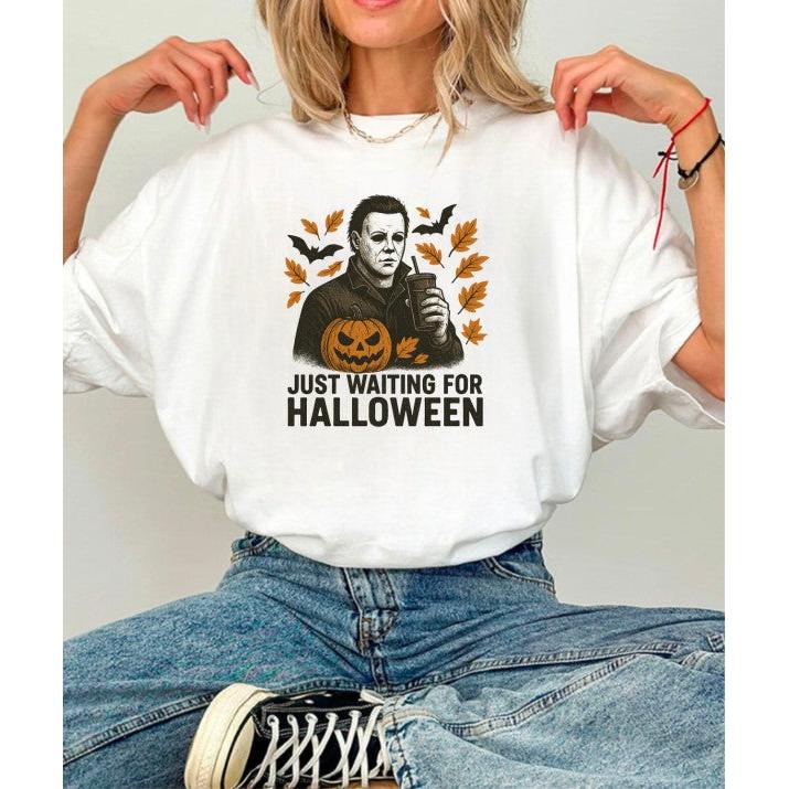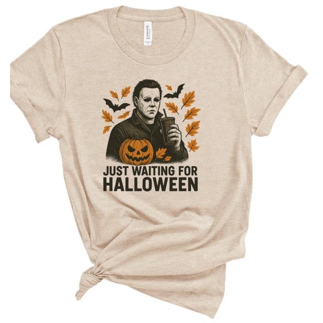 Just Waiting Halloween Graphic Tee Top100% combed and ring spun cotton Unisex Tee