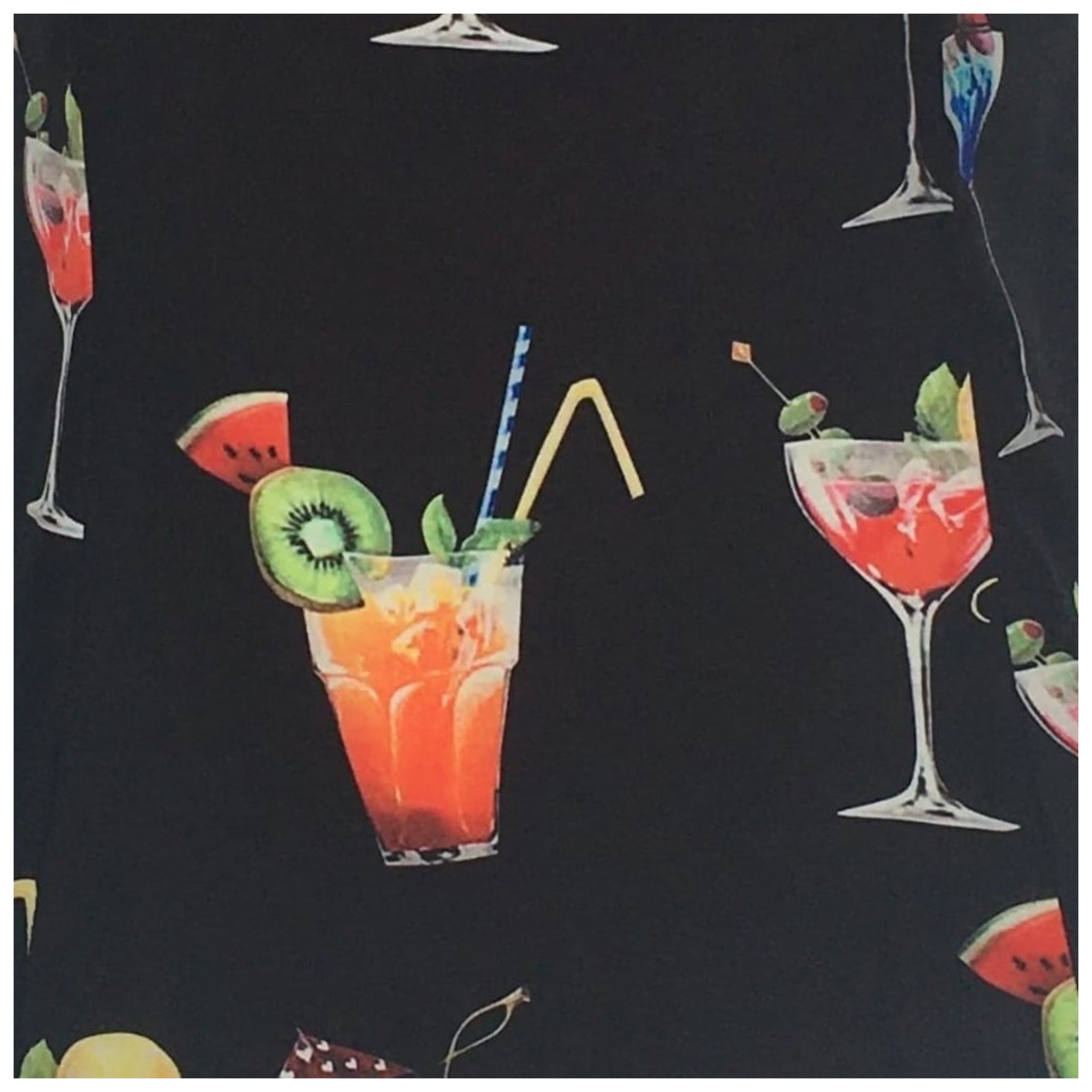 It's five o'clock somewhere!! So put on the PERFECT addition to any pinup outfit in this cocktail print peasant top. With its simple, classy look you can pair it with your favorite capris, pedal pushers, or circle skirt for a romantic retro look. Umbrella for your drink, dahling?