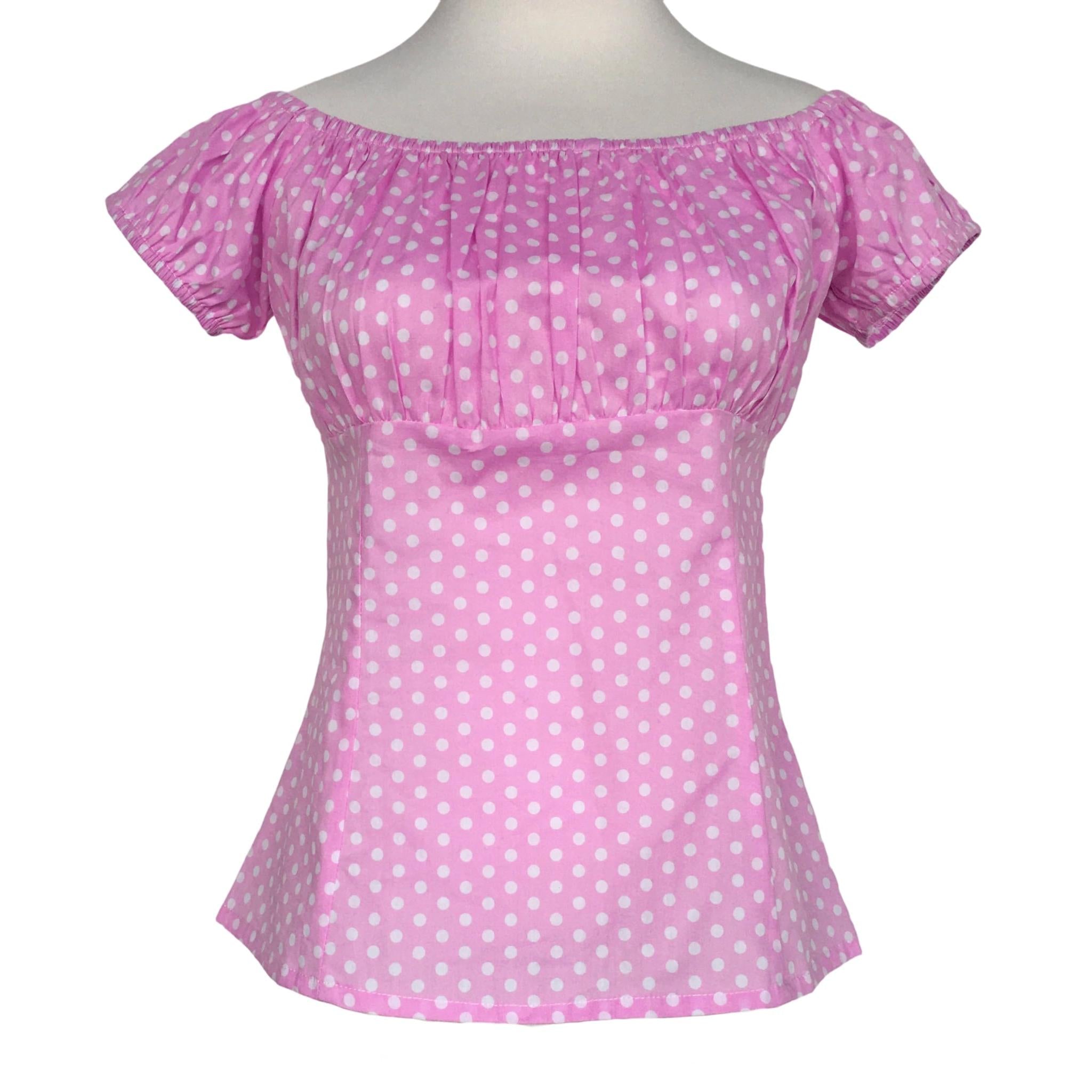 A peasant blouse is the PERFECT addition to any pinup outfit with its simple, classy look. Pair it with your favorite capris, pedal pushers, or circle skirt for a romantic retro look. It can be worn on or off-the-shoulder. Zips on the side for easy on and off.