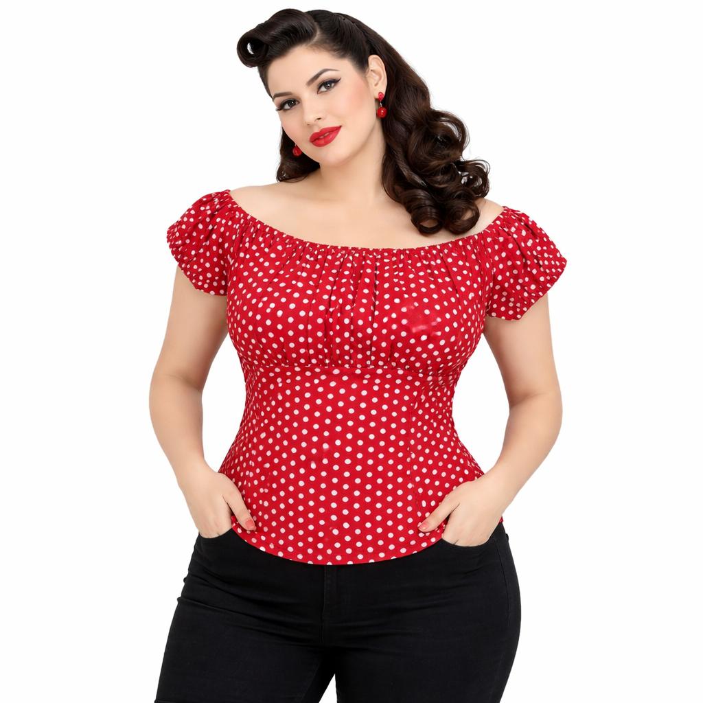 A peasant blouse is the PERFECT addition to any pinup outfit with its simple, classy look. Pair it with your favorite capris, pedal pushers, or circle skirt for a romantic retro look. It can be worn on or off-the-shoulder. Zips on the side for easy on and off.