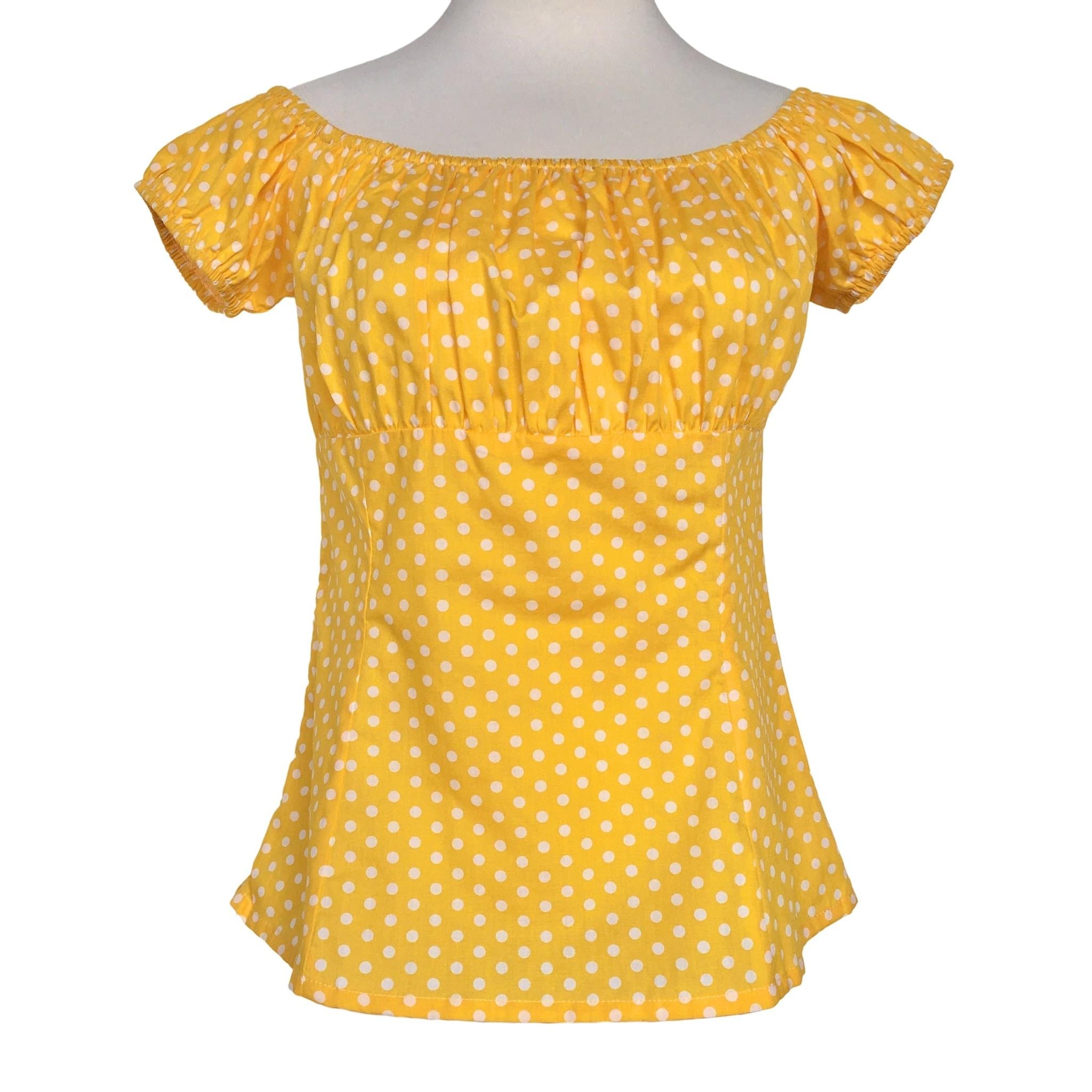 A peasant blouse is the PERFECT addition to any pinup outfit with its simple, classy look. Pair it with your favorite capris, pedal pushers, or circle skirt for a romantic retro look. It can be worn on or off-the-shoulder. Zips on the side for easy on and off.