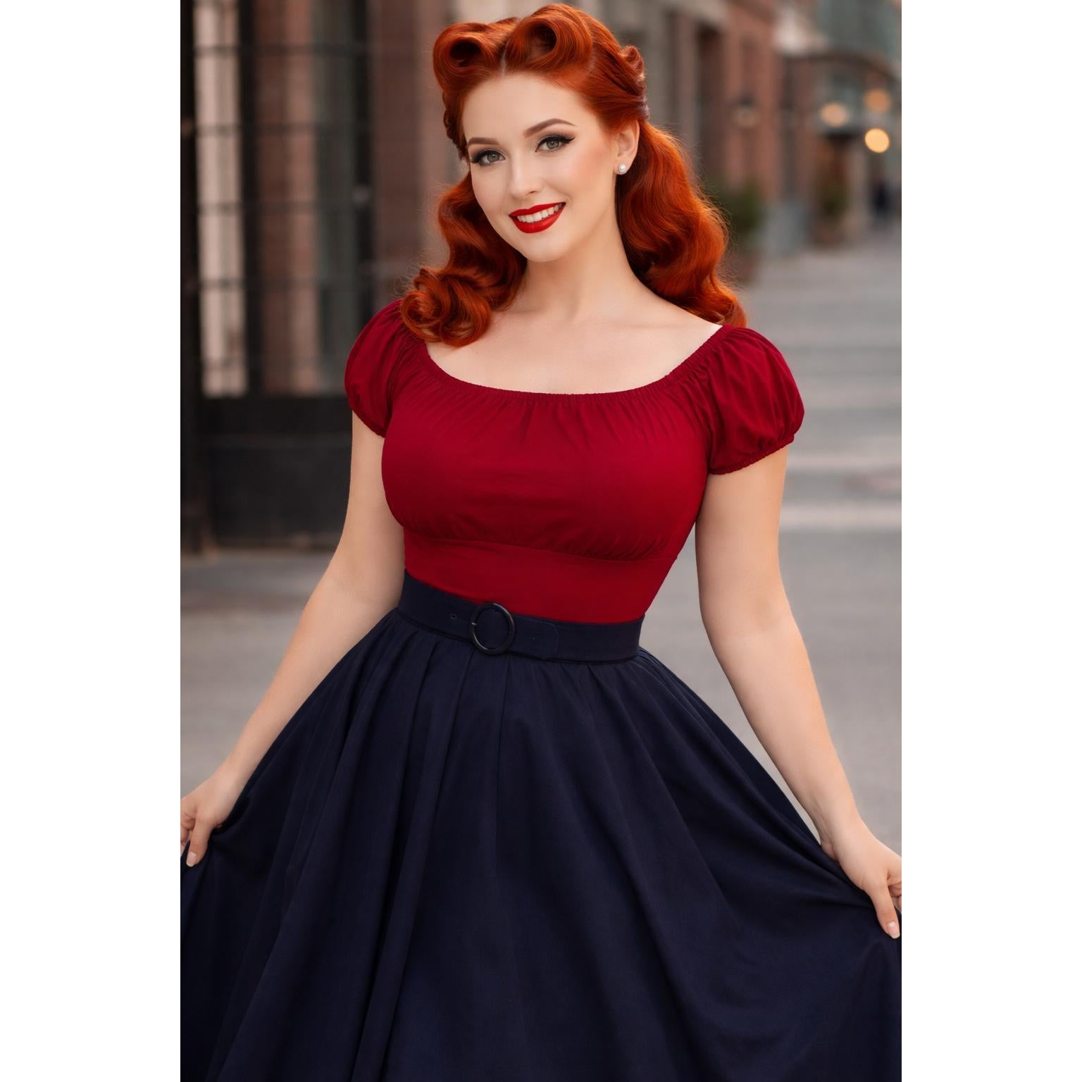 Pinup Peasant Top in Solid Burgundy